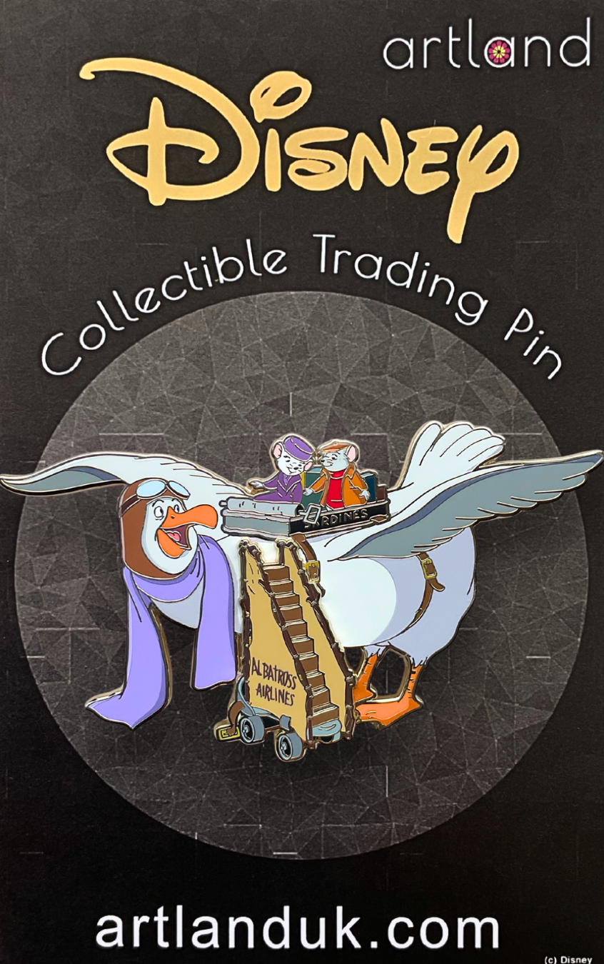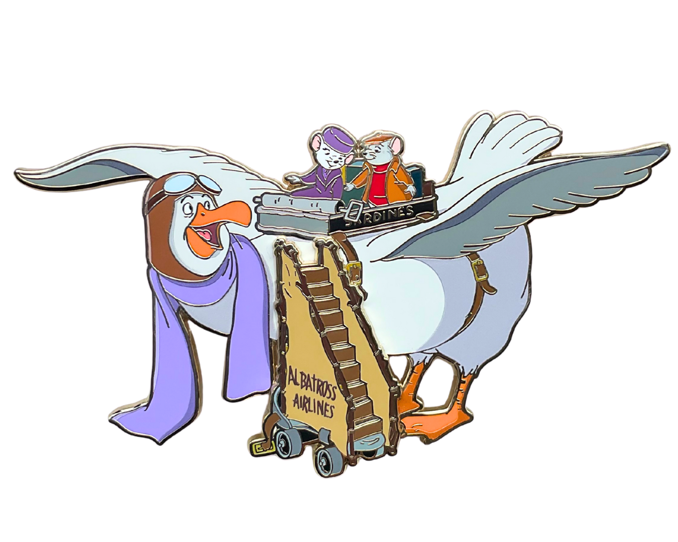 Albatross Airlines Albatross Airlines is a large 5" x 2.8" pin on pin design featuring Orville with his wings wide and ready for flight, looking back at Bernard and Miss...