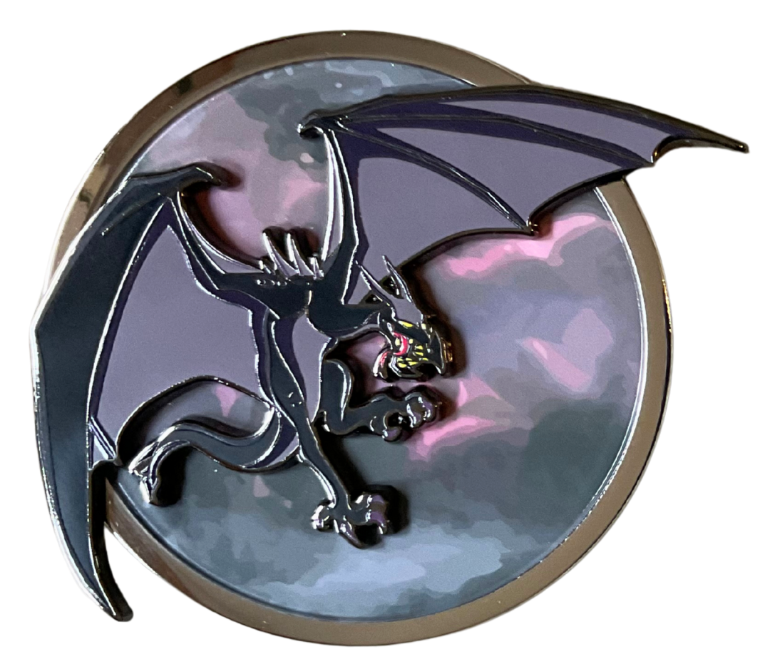 Clumsy Tinkerbell Our newest Jumbo 100 pin featuring a three layer pin design! This pin depicts Tinkerbell, with her intensely glittering see through wings, fallen amongst the sewing supplies as...